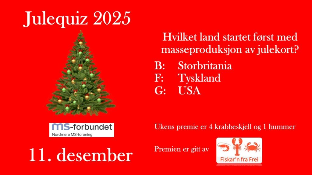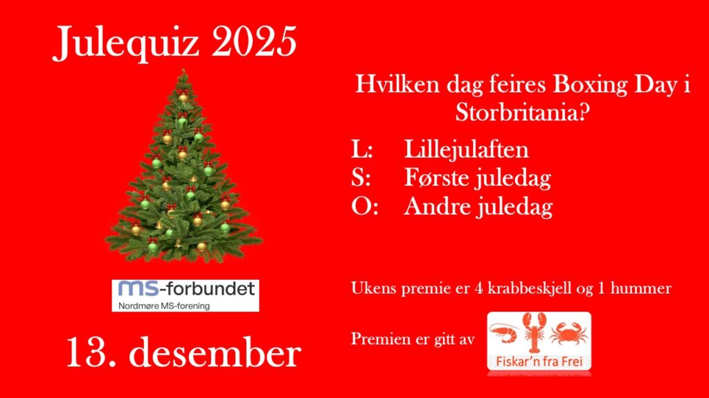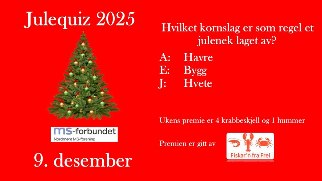 Vi vil publisere et spørsmål, med 3 forskjellige svaralternativer, hver dag i perioden 1 - 24 desember. Spørsmålene vil bli publisert på hjemmesiden vår, på Facebook-siden vår. I tillegg vil det bli sendt ut en e-post.