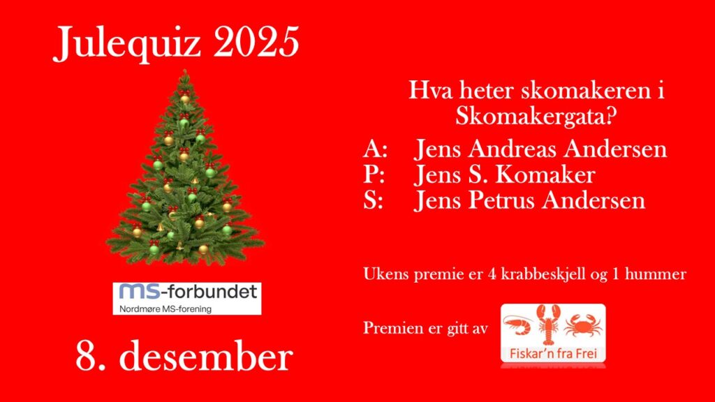 Vipps kr. 100 (pr. lodd) til 543020 Skriv Julequiz og navnet ditt i meldingen